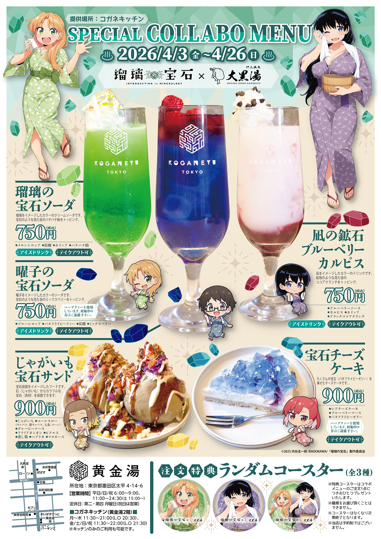 TVアニメ「瑠璃の宝石」と大黒湯/黄金湯「コガネキッチン」のコラボが決定しました!!